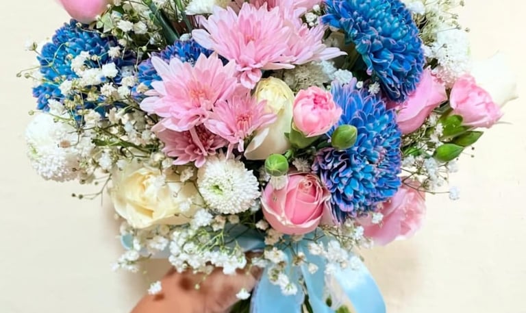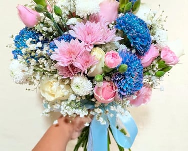Hand bouquet cantik yang cocok untuk hadiah atau acara spesial, dibuat dengan bahan segar dan desain elegan.