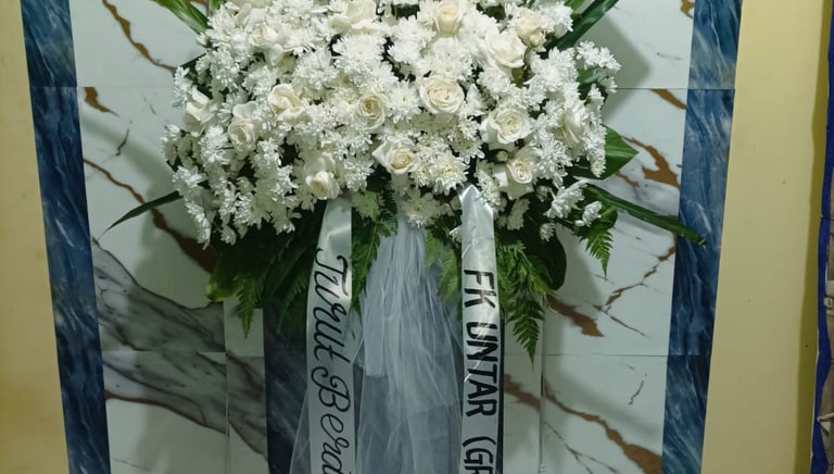 Karangan bunga duka cita dengan sentuhan penuh empati.